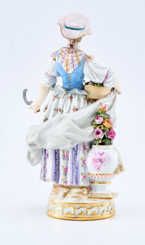 216/422 Gärtnerin mit Blumenkorb, Meissen um 1880.