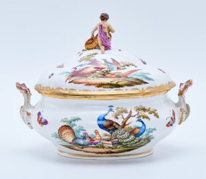 216/319 Ovale Terrine mit Vogeldekor, Meissen um 1880.