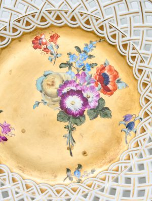 216/322 Paar Teller mit Blüten in Goldfond, Meissen Marcolini (1774-1813).