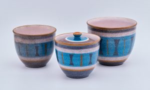 216/280 Satz von 2 Cachepots mit Dose, Wächtersbach um 1960.