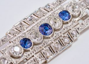 216/763 Saphir-Diamant-Brosche, Art Déco um 1920
