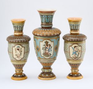 213/687: 3-tlg. Vasen-Garnitur „Jahreszeiten“, Historismus, Villeroy & Boch um 1900
