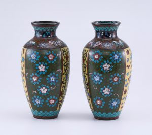 213/1186 Paar kl. Cloisonné-Vasen, China wohl 1. Hälfte 20. Jh.