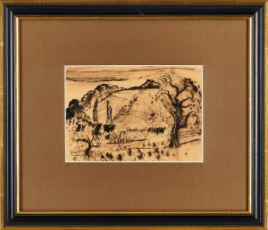 212/117 Bleistift/Tuschezeichnung Georg Heck „Landschaft“ 1945