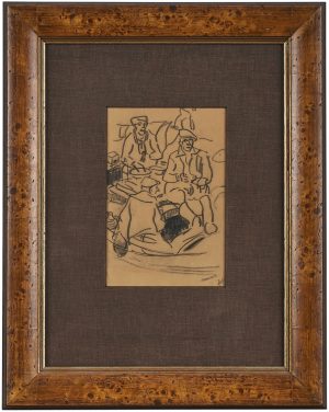 210/359 Kohlezeichnung Monogr. FM „Sitzende Figurengruppe“