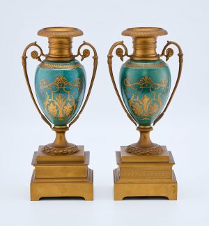216/436 Paar Henkelvasen, Empire-Stil, wohl Frankreich um 1900.
