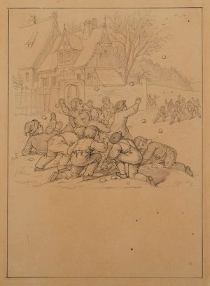 Lot 374: 2 Bleistiftzeichnungen Albert Henschel "Deckelentwurf für ein Feuerzeug" u. "Die Schneeballschlacht"