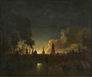 Lot 202: Gemälde Abraham Pether „Blick auf Oxford im Mondlicht“