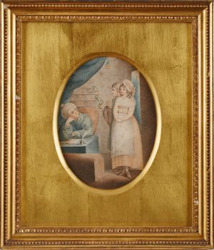 Gemälde Josef Valentin „Schlafendes Mädchen mit neckendem Knaben“.