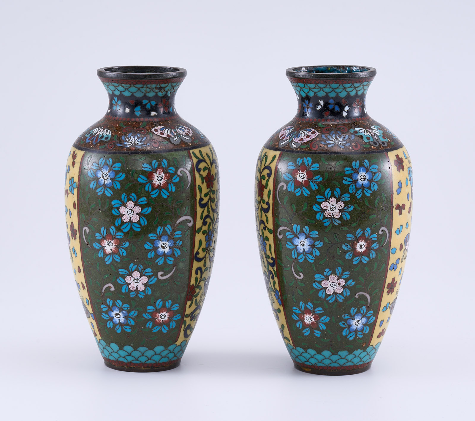 Paar kl. Cloisonné-Vasen, China wohl 1. Hälfte 20. Jh.
