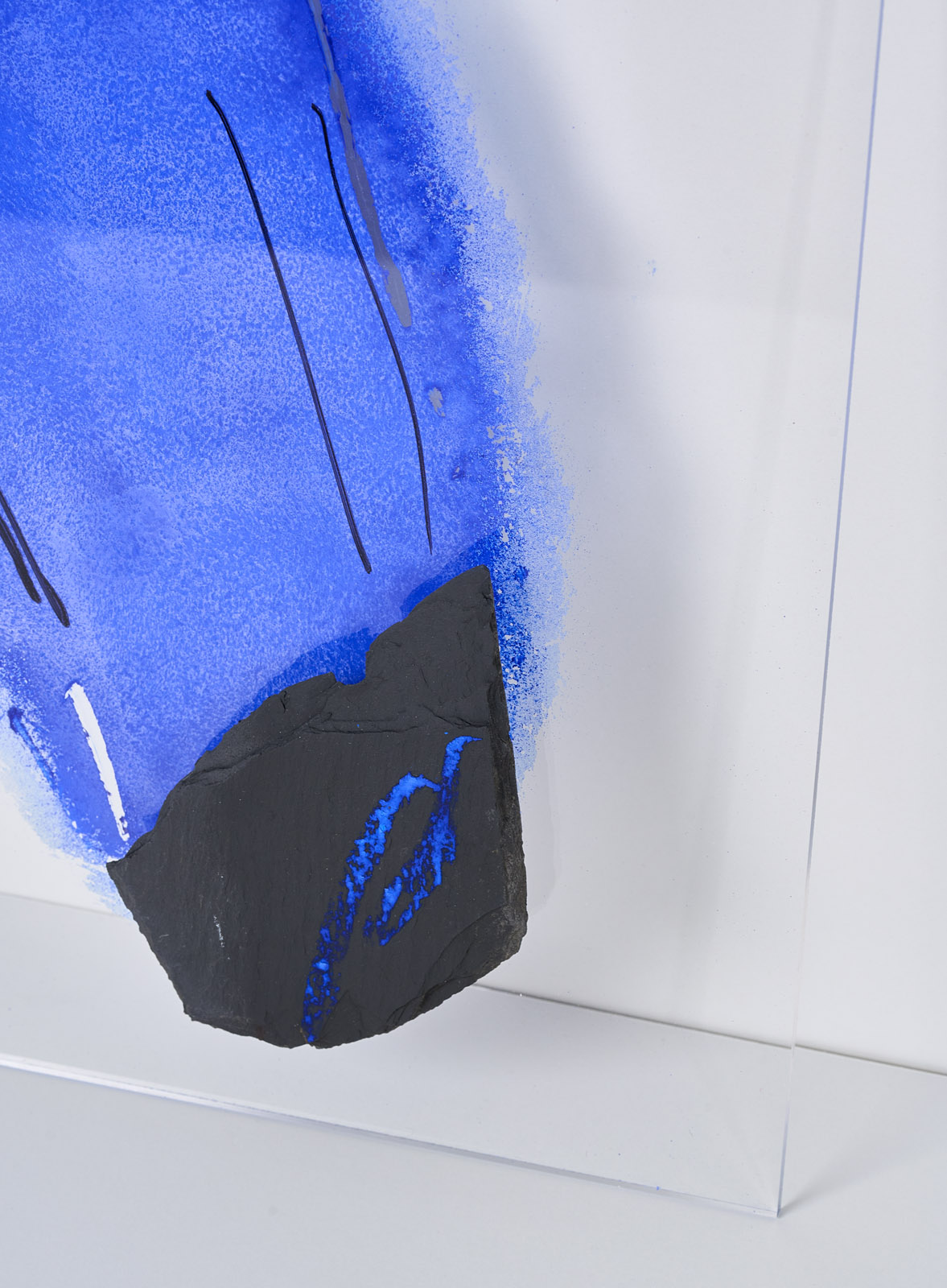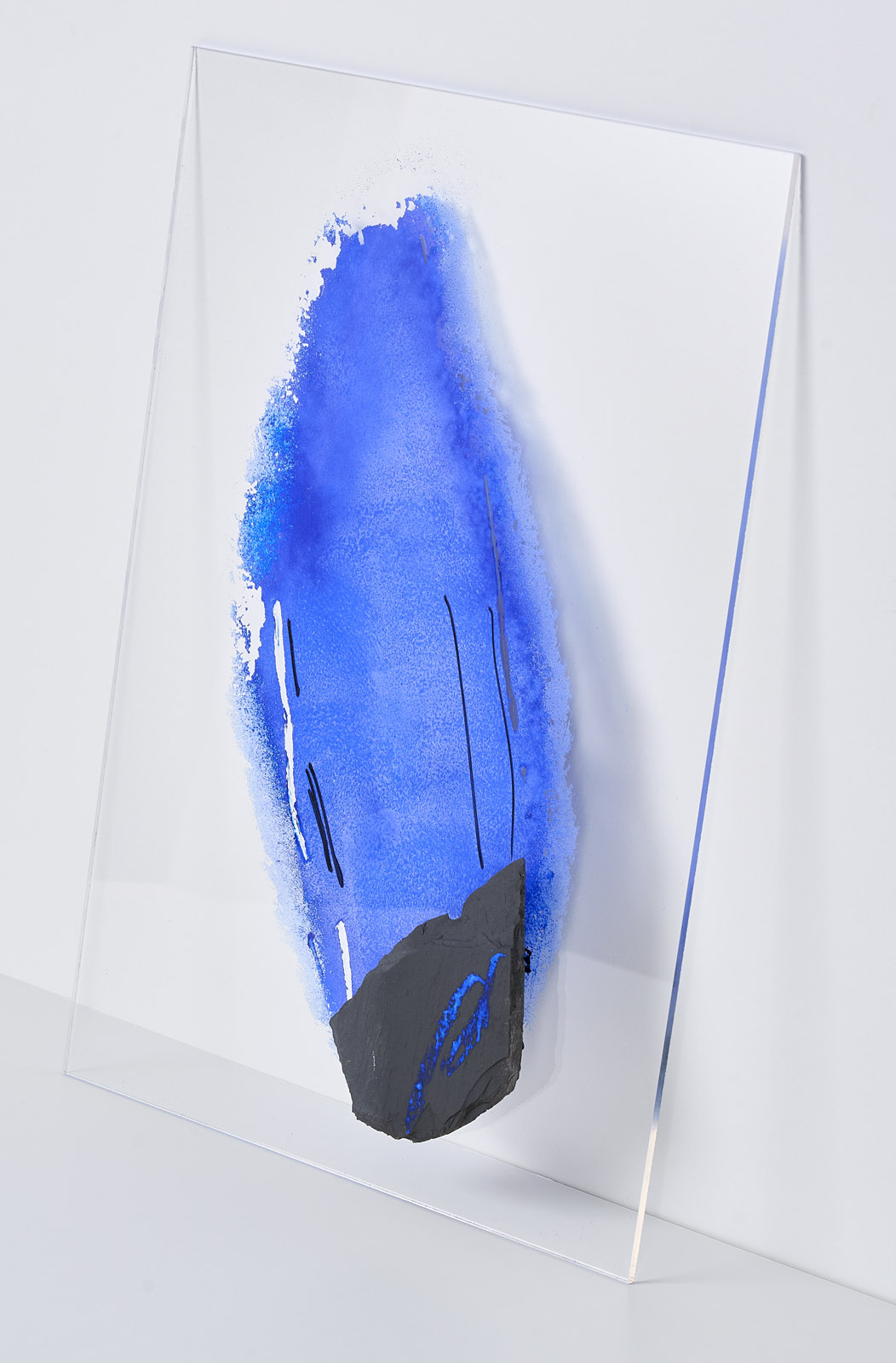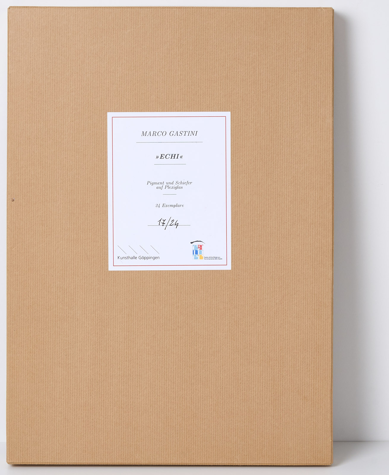 1938 Turin – 2018 Turin „Echi“ 2005 Pigment u. Schiefer auf Plexiglas, Exemplar 17/24 Öl/Plexiglas, 50 x 35 cm, o.R. In Originalkarton m. Klebezettel der Kunsthalle Göppingen / Centro di Arte Moderna e Contemporanea della Spezia. Provenienz: Kunsthalle Göppingen; Privatsammlung Hessen Lit: AKL