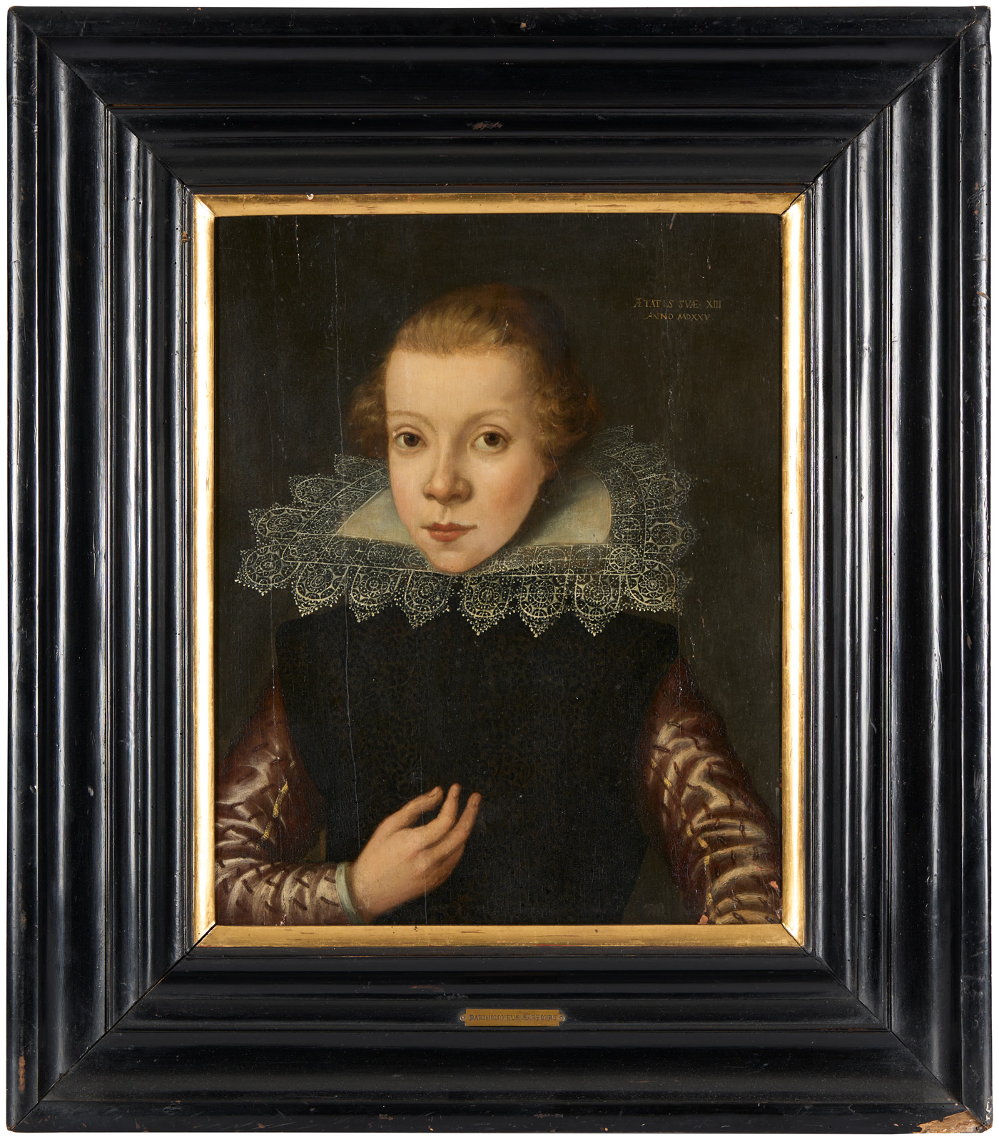 „Portrait eines Knaben im Alter von 12 Jahren“ Öl/Holztafel (parkettiert), 50,5 x 40 cm