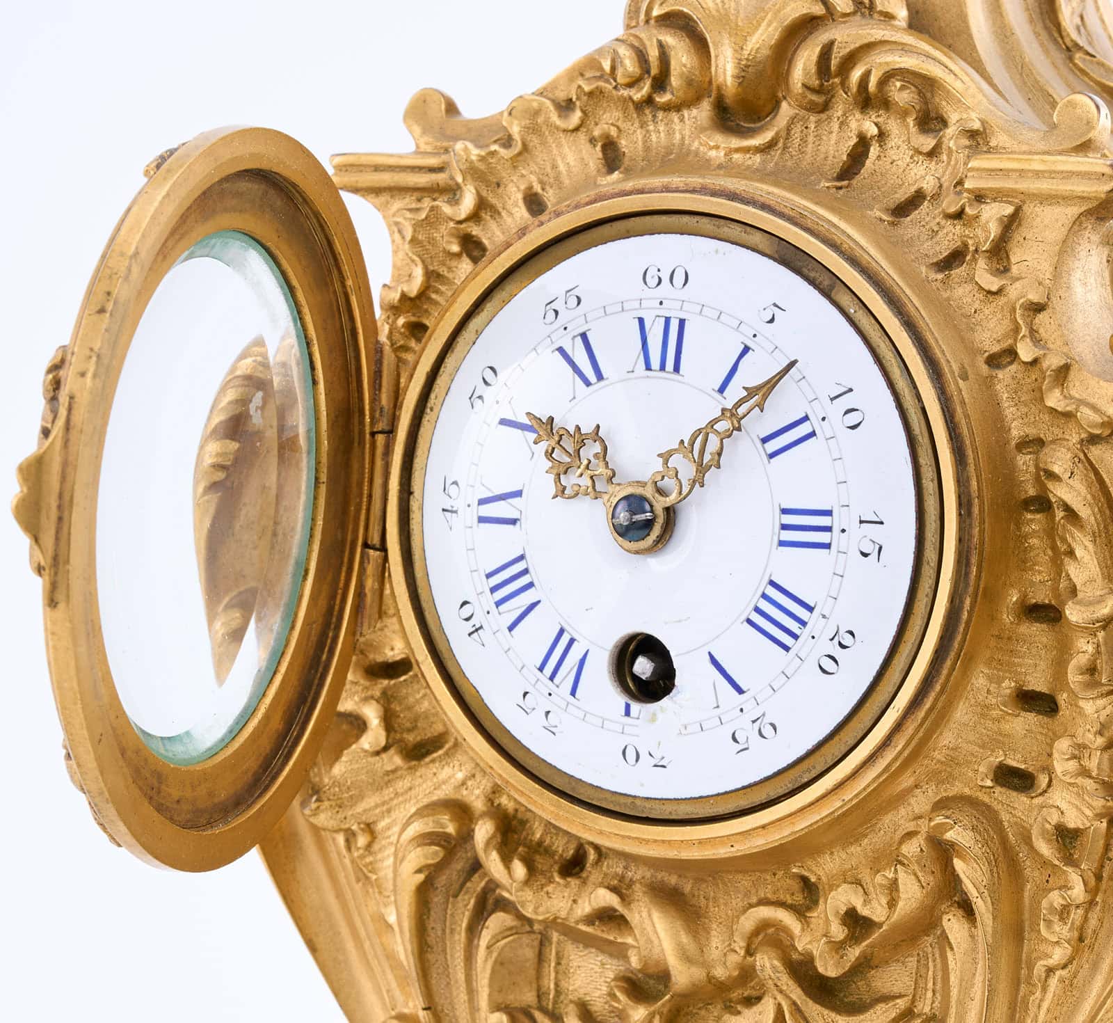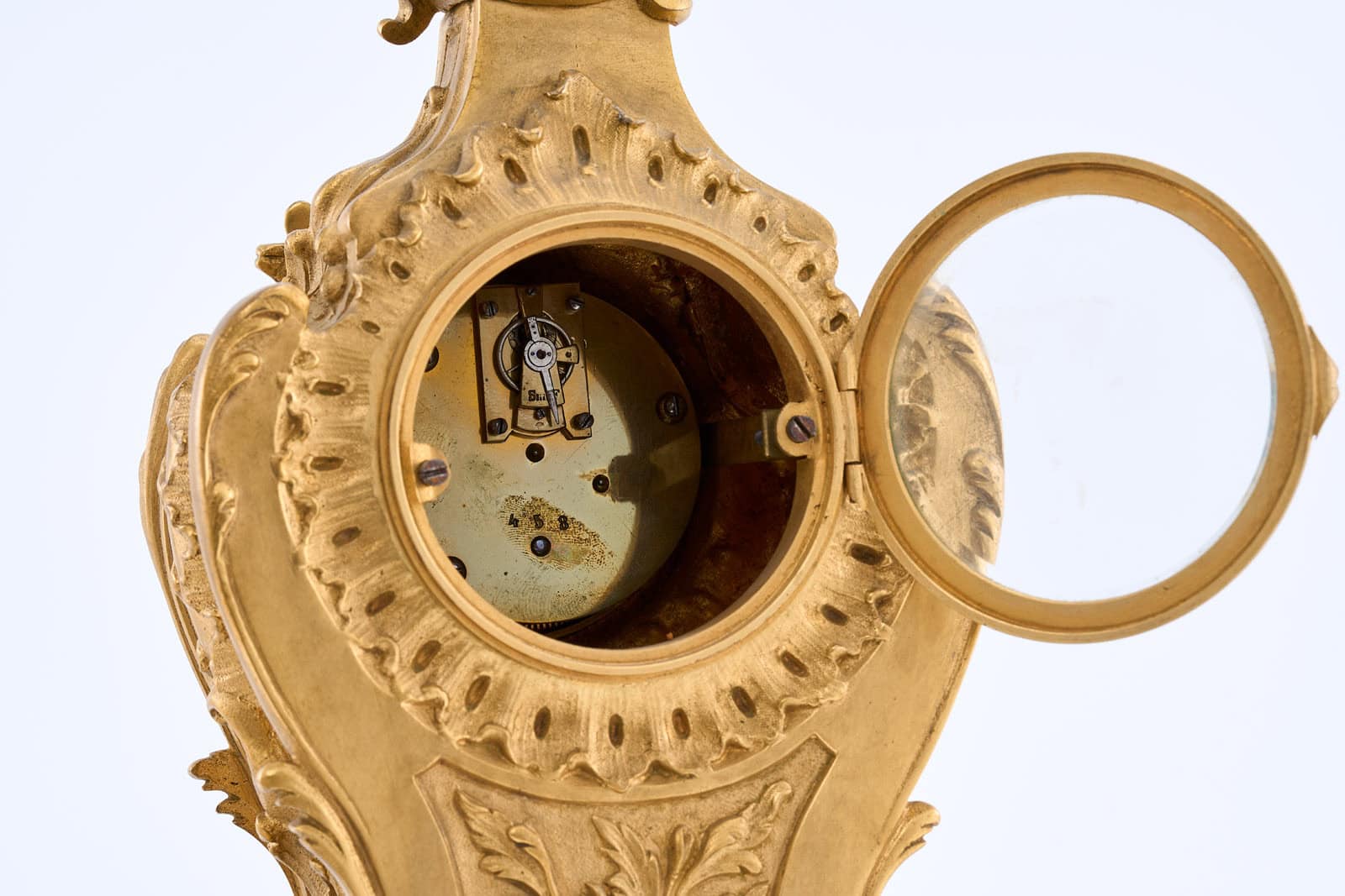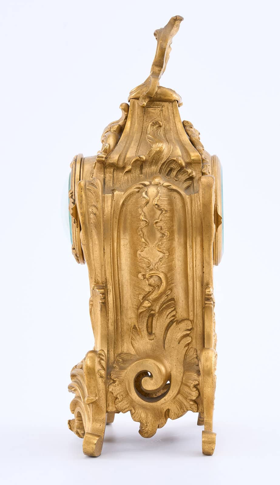 Reliefiertes vergoldetes Bronzegehäuse m.