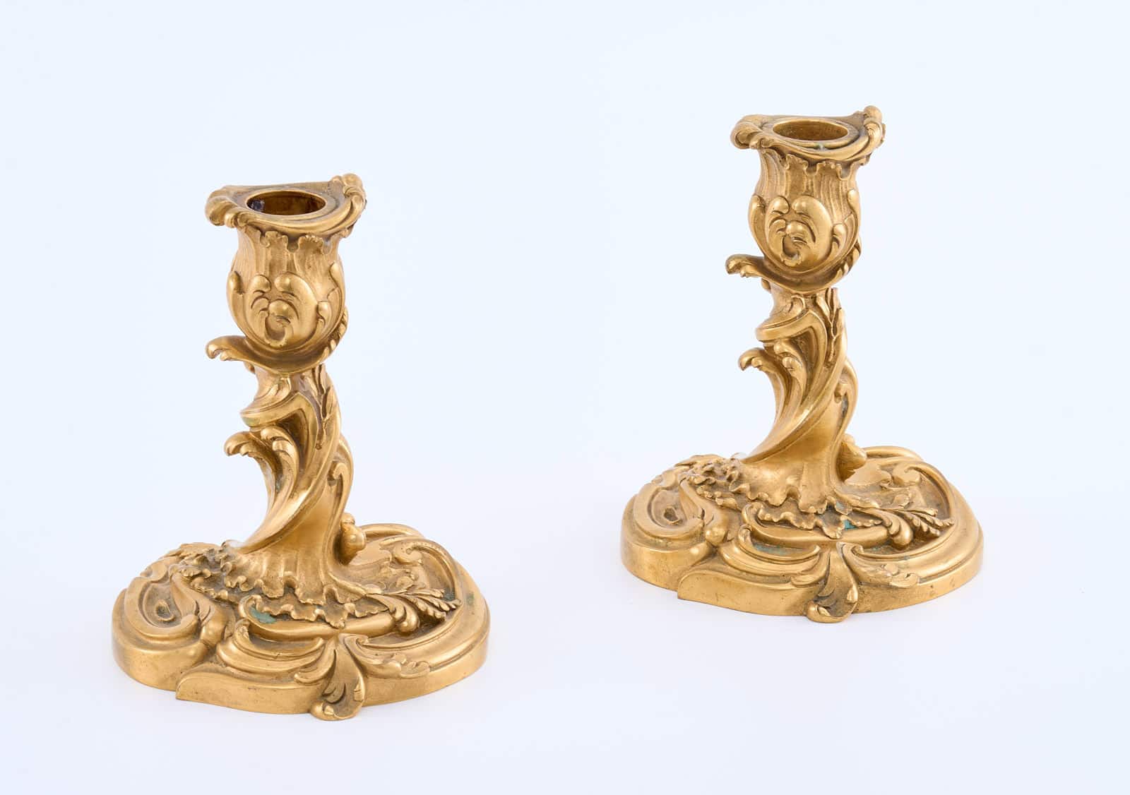 Dazu 2 Tischleuchter. Gewundeter halbhohe