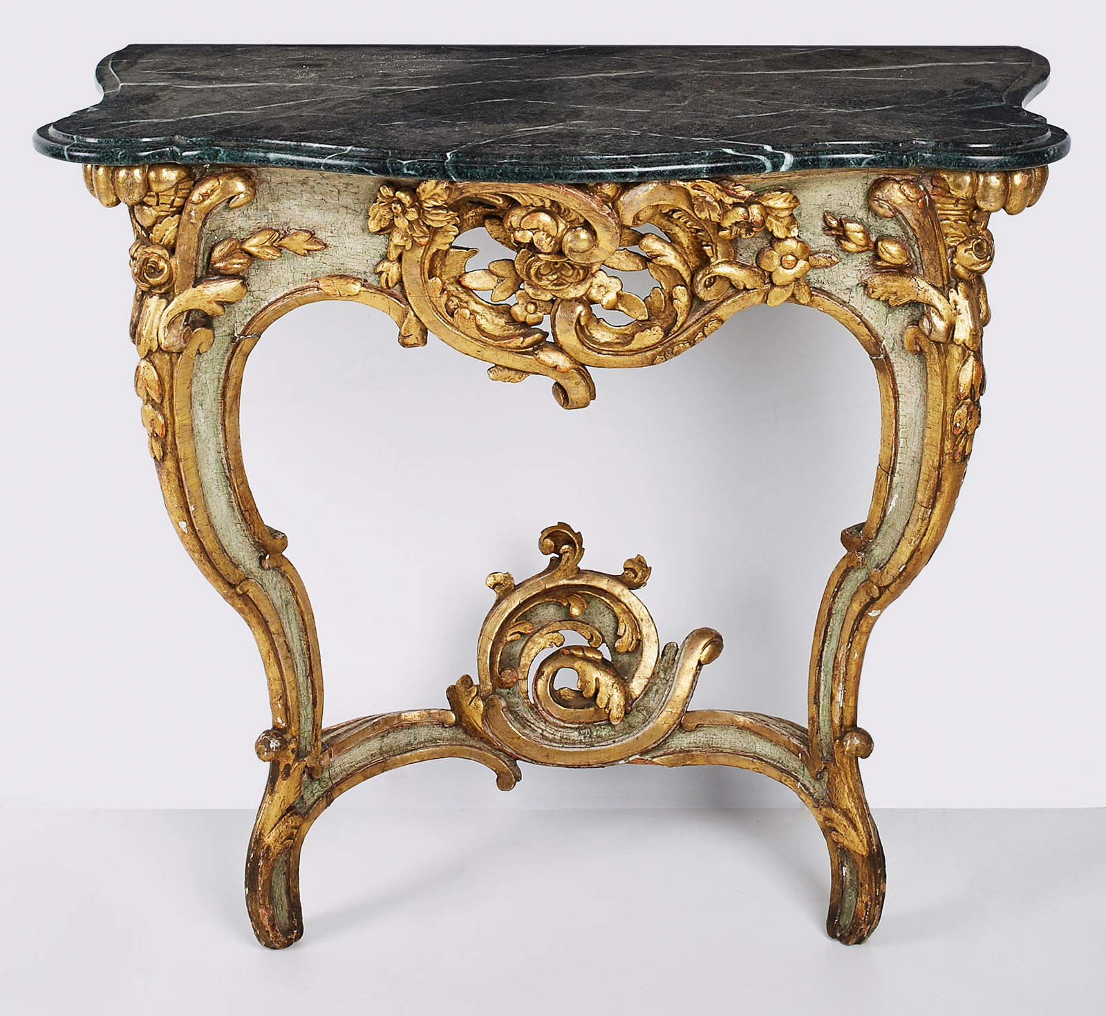 Geschweiftes profiliertes grün/gold gefasstes