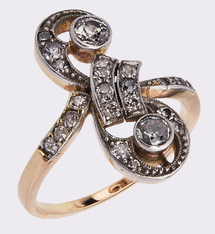 14 kt RG/Platin, besetzt m. 2 Altschliff-
