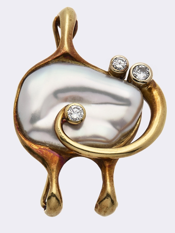 Gold-Clip m. Süßwasserperle u. Brillanten,