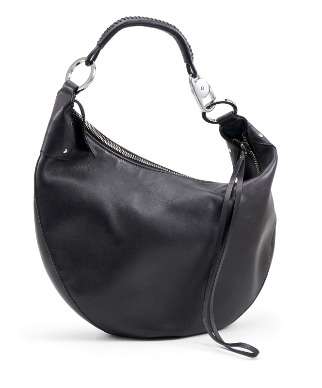 Glattes schwarzes Leder, chromfarbene Metall-