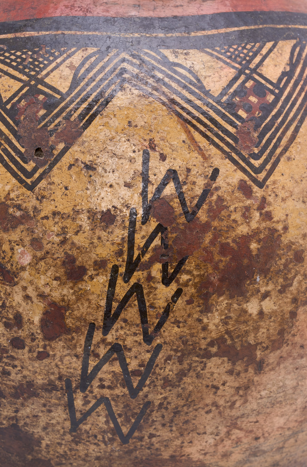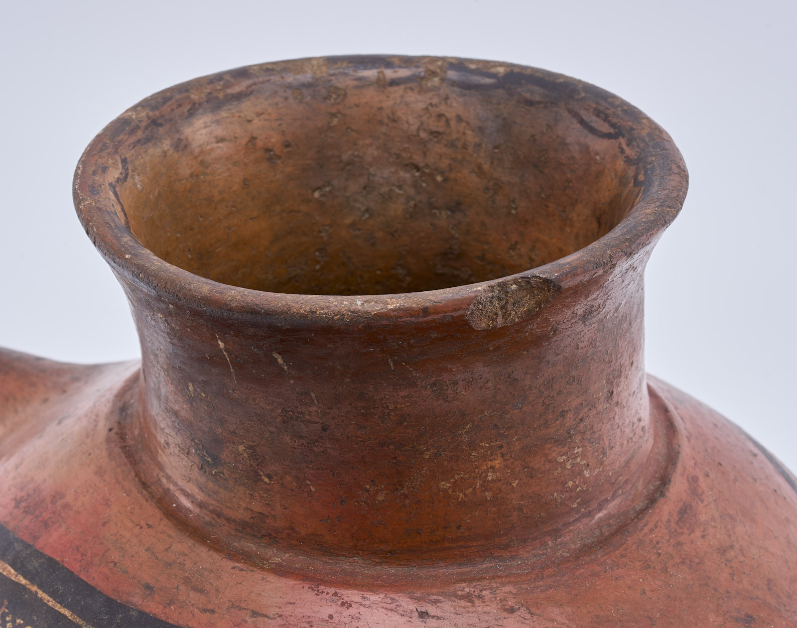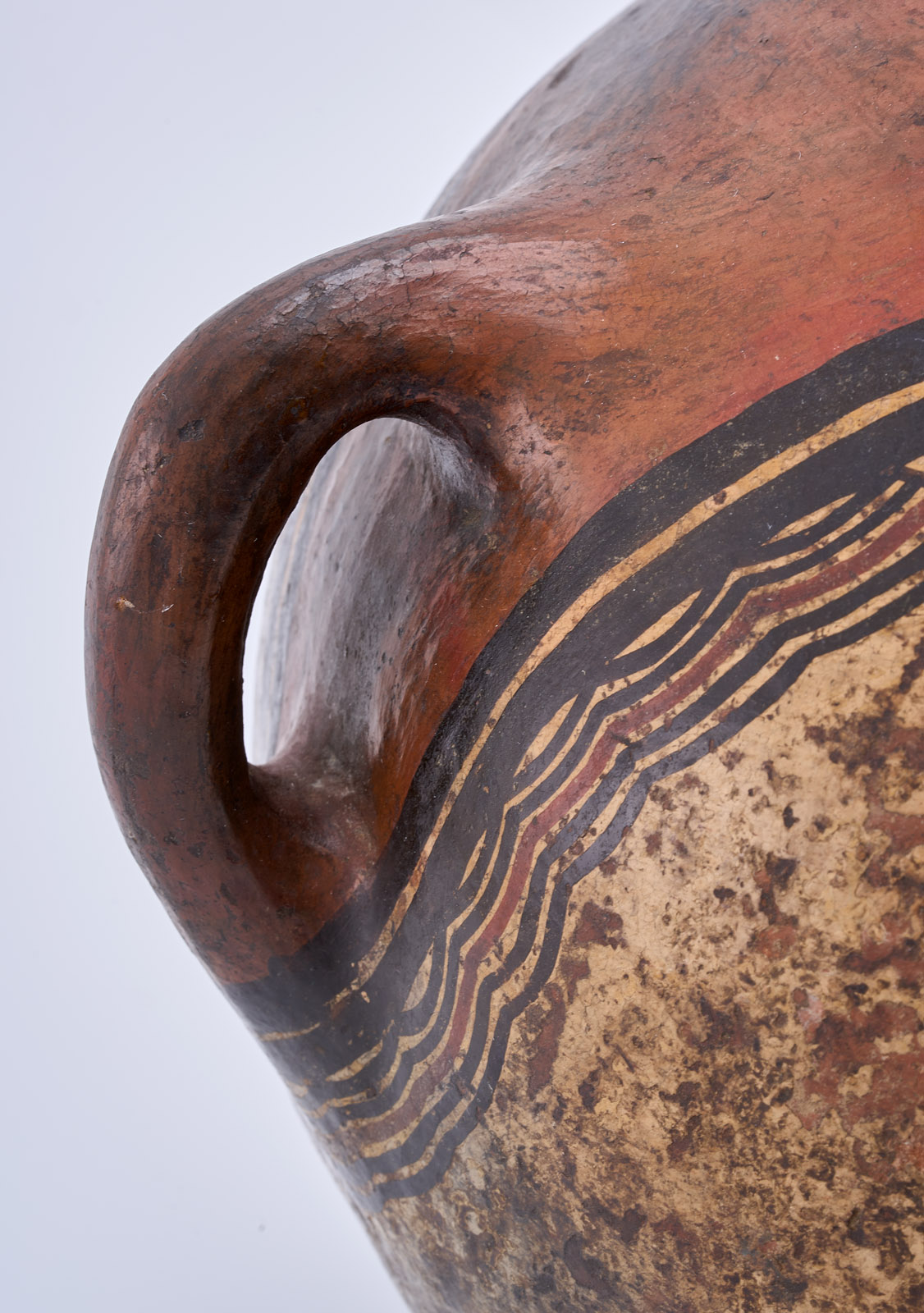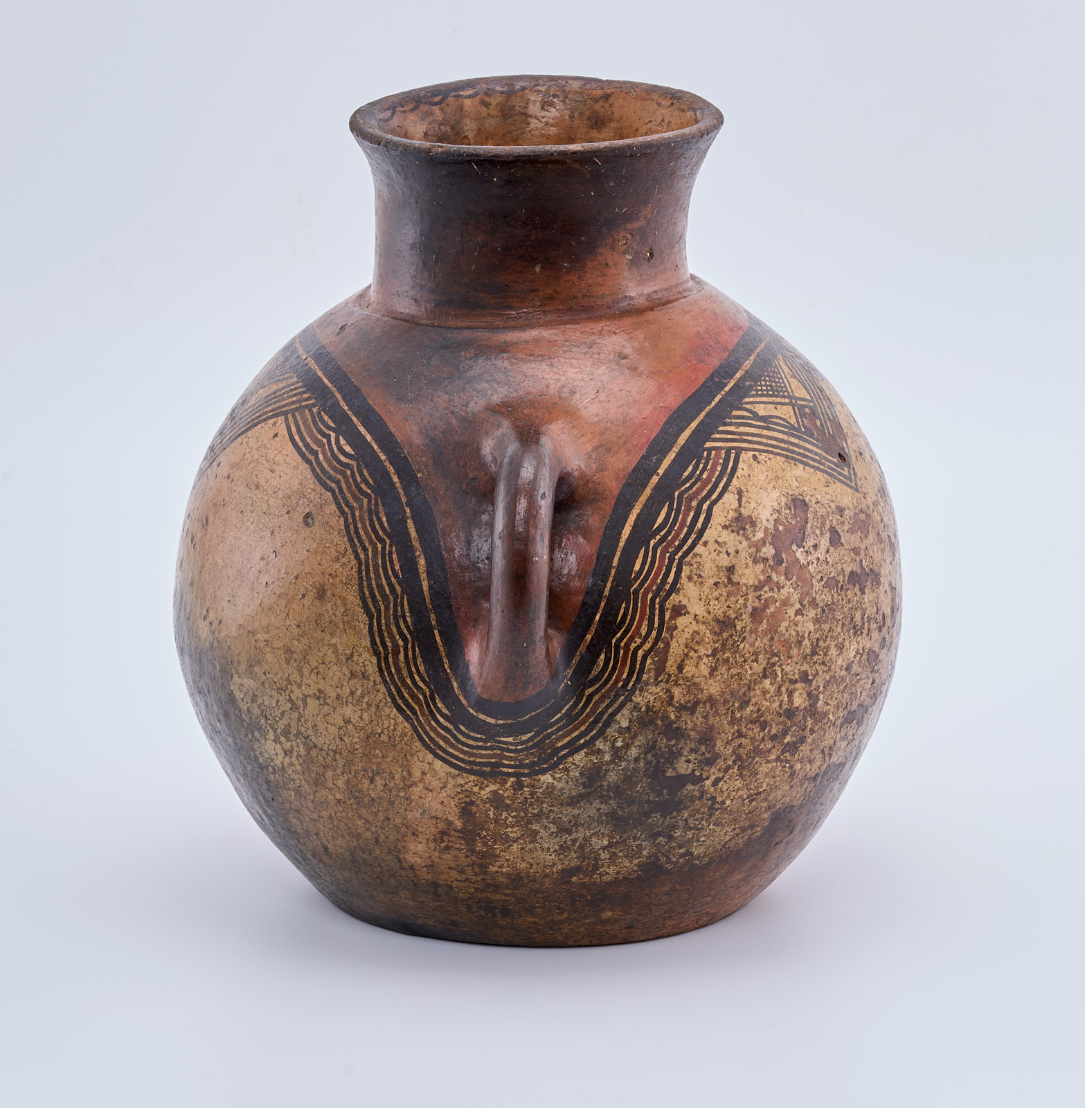 bemalt. Kugeliger Korpus, seitl. m. kl. Henkeln,