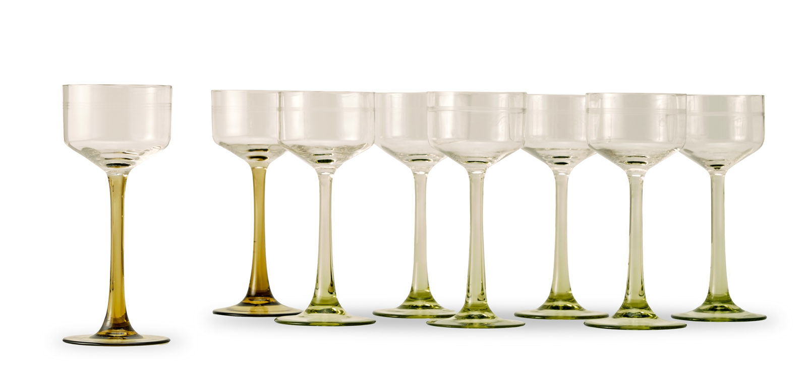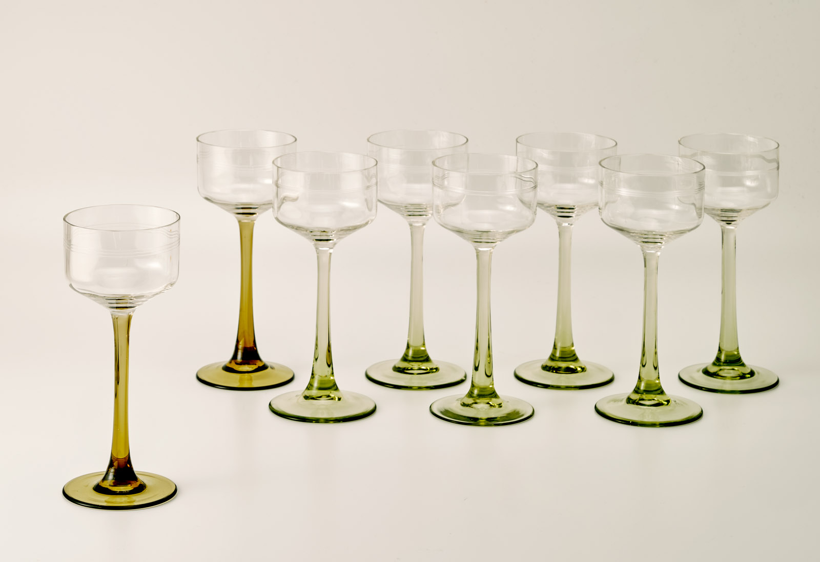 Satz von 8 Weingläsern, Jugendstil, um 1900.