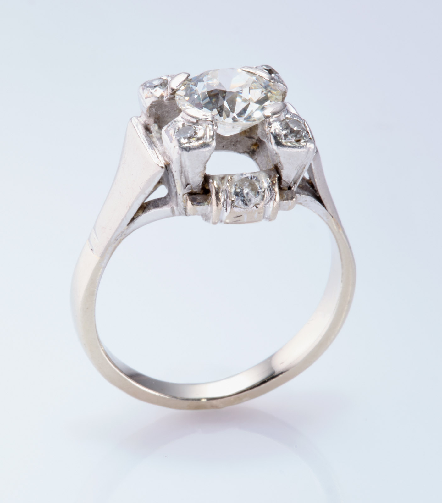 14 kt WG, besetzt m. 1 Altschliff-Diamant v. ca.
