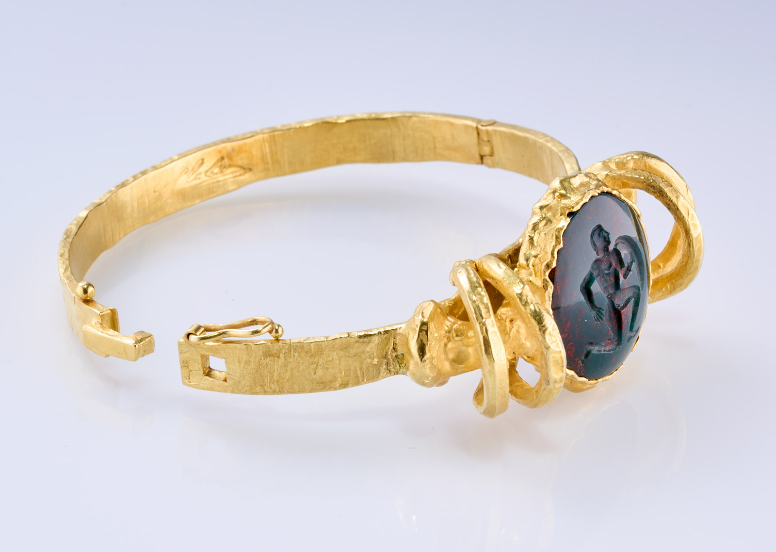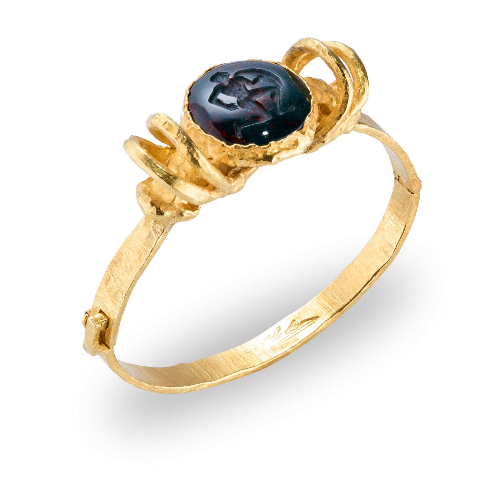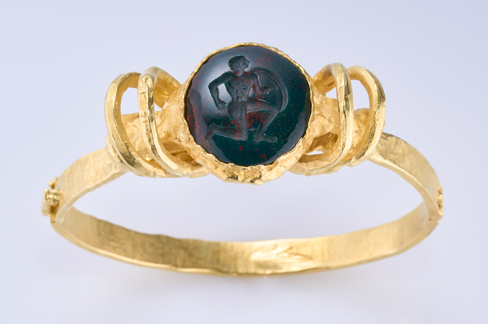 Gold-Armreif m. gr. Blutjaspis-Gemme,