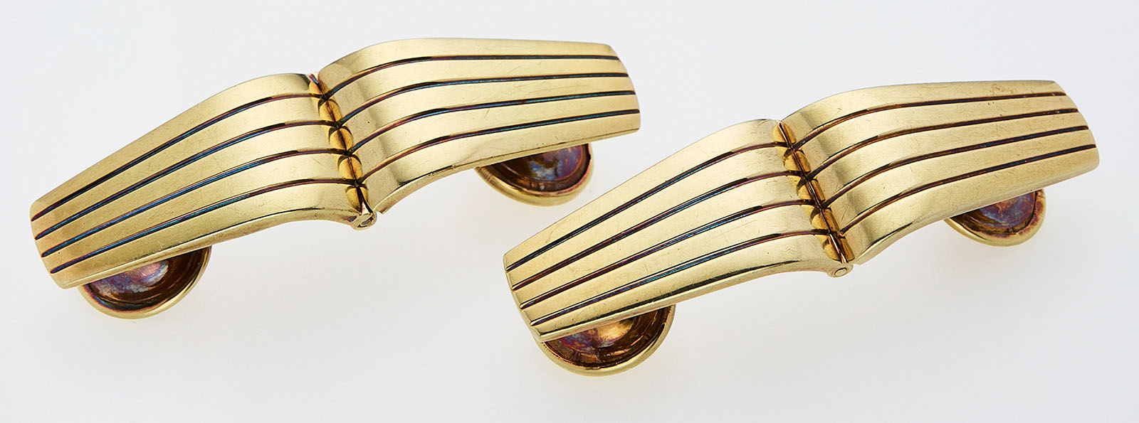 14 kt GG. Breite Manschettenknöpfen m. Rillen
