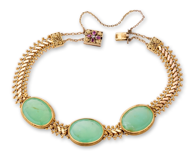Goldarmband m. Nephriten, um 1880.
