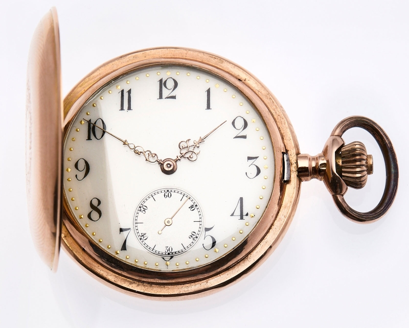 14 kt RG. Handaufzug. 2 Golddeckel.