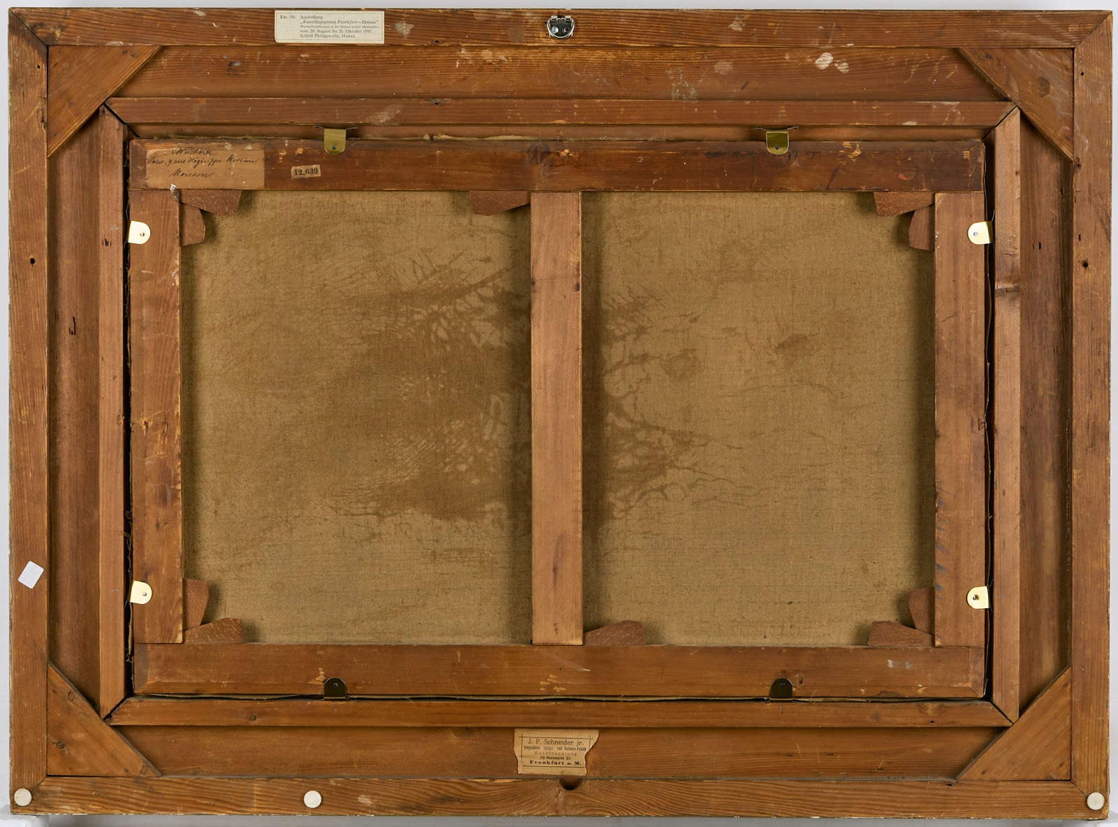 verso auf dem Keilrahmen alter Klebezettel mit