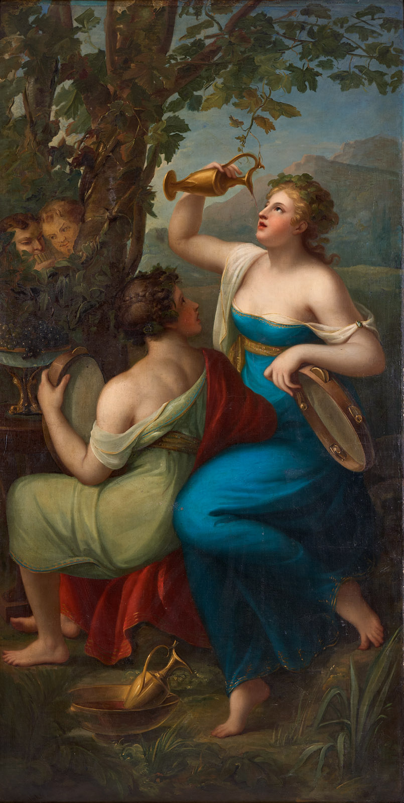 „Zwei Bacchantinnen, von Satyrn belauscht“
