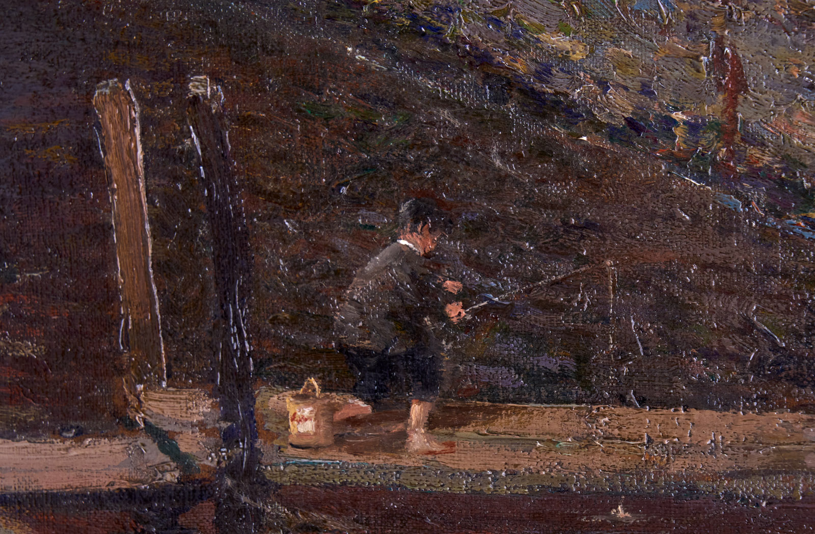 Gemälde Max Uth 1863 Berlin – 1914 Hermannswerder „Der junge Angler“ Öl/Lwd., 70 x 70 cm, restauriert Lit.: AOW