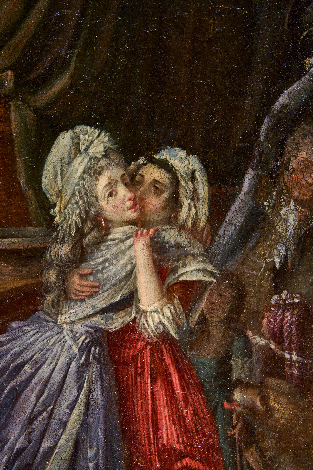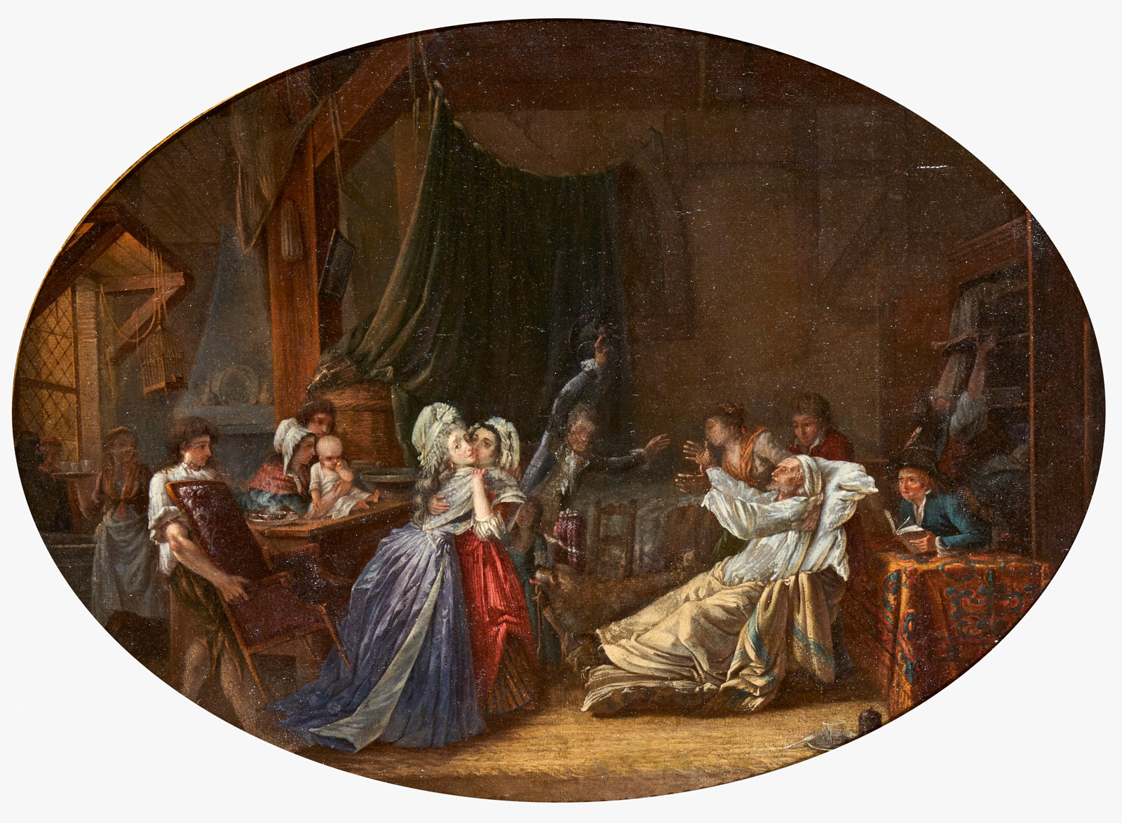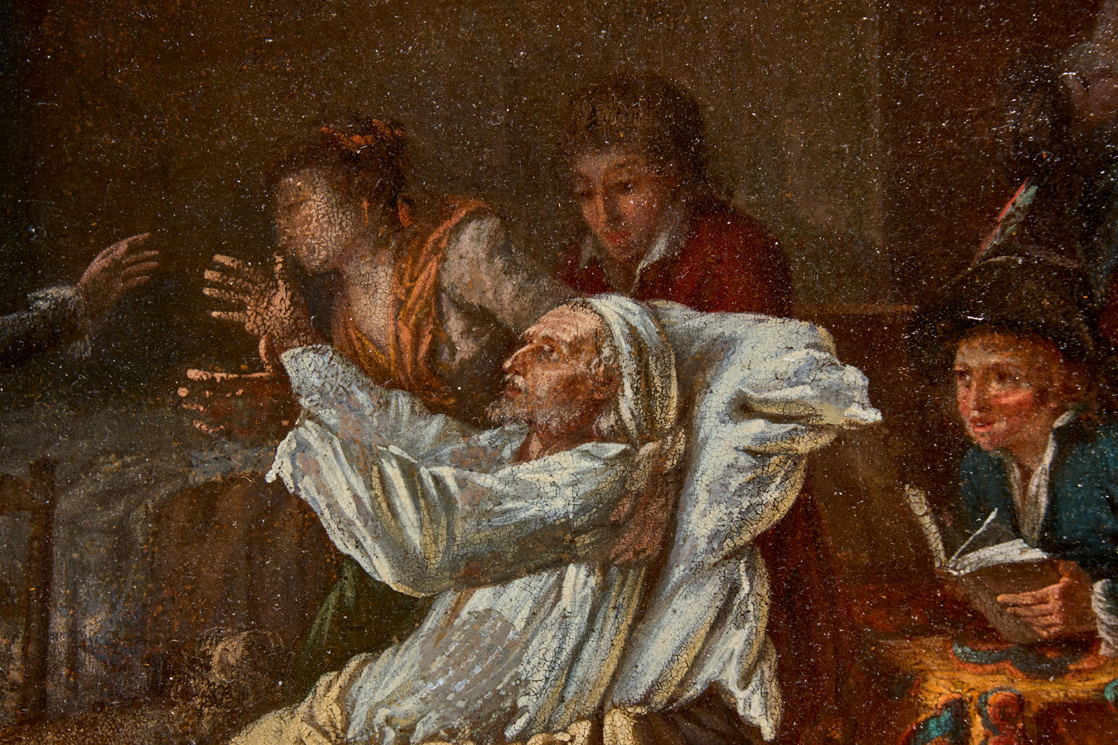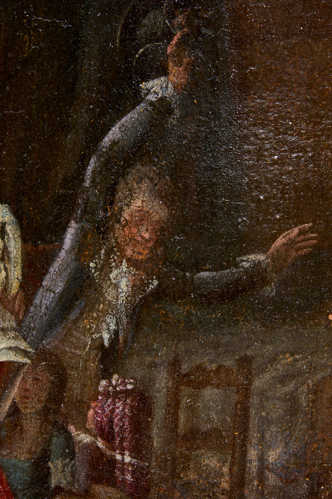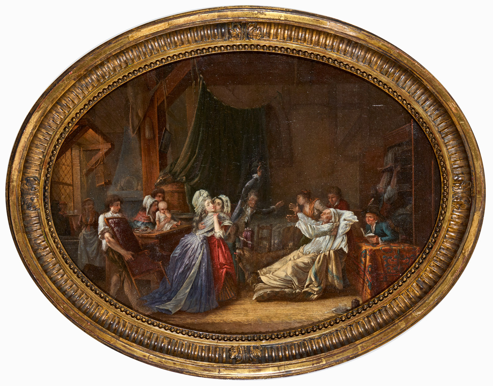 Gemälde Figurenmaler 18. Jahrhundert „Interieur mit Figuren“ Öl/Lwd. (doubl.), 43 x 58 cm (im Oval)