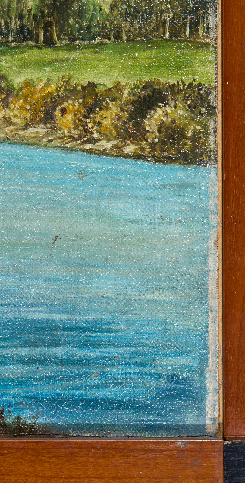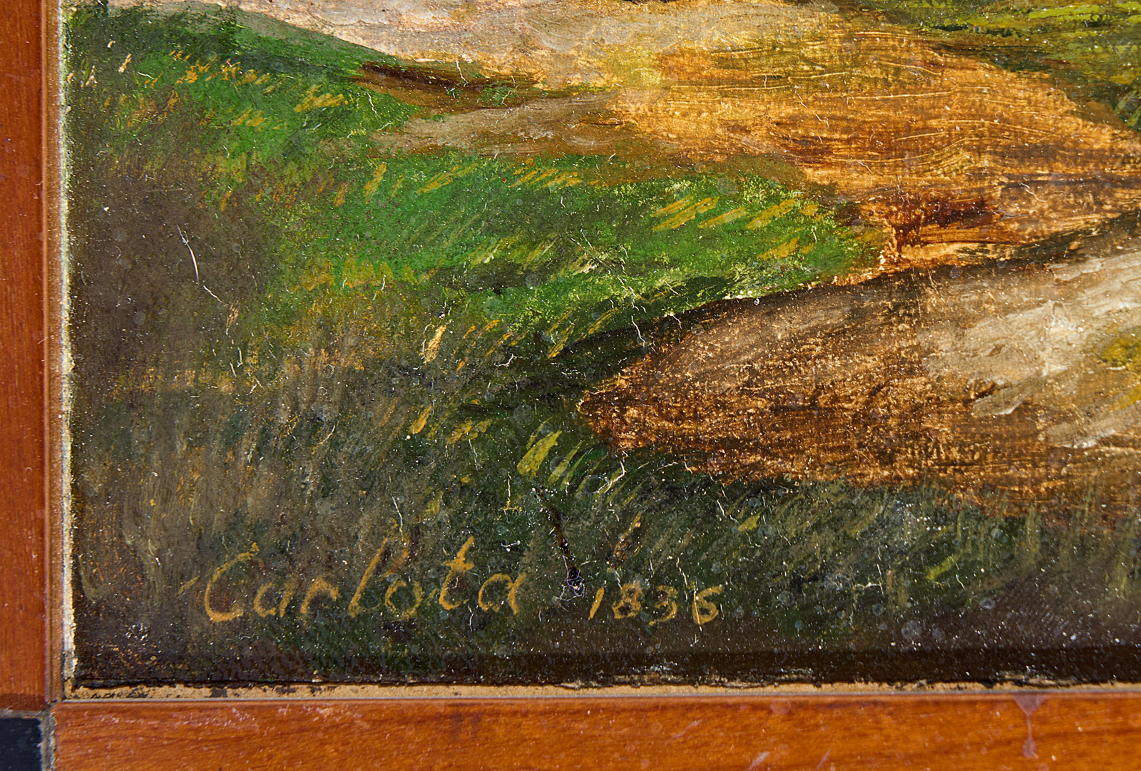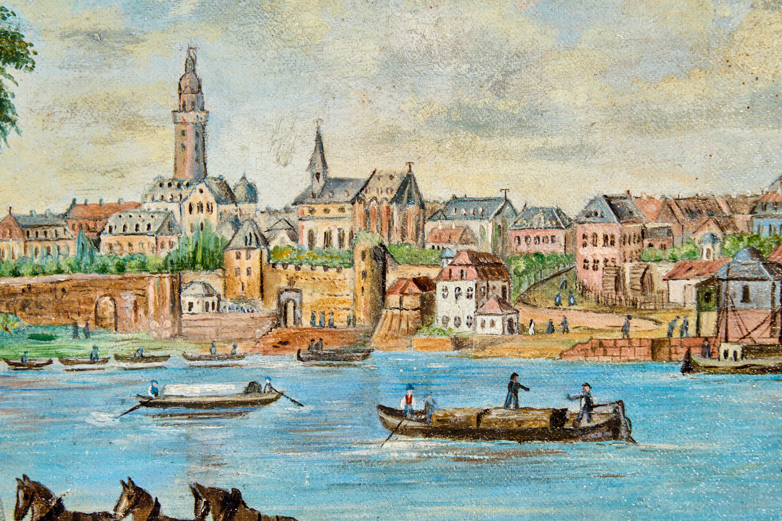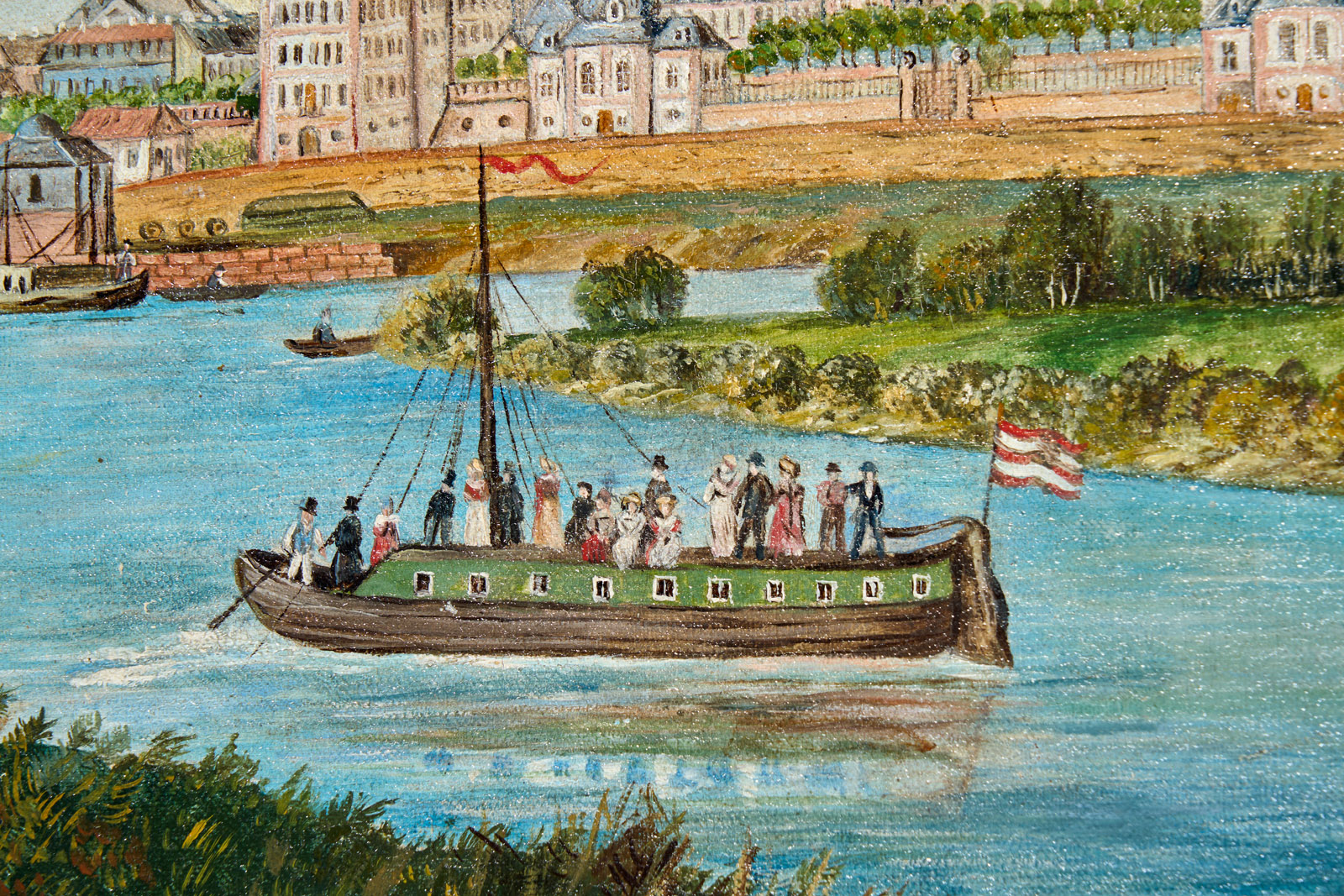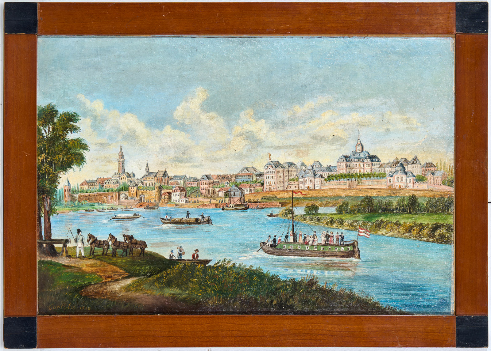 Gemälde Sign. Carlota Dat. 1836 „Höchst-Blick auf den Bolongaro Palast“ Öl/Lwd. auf Karton, 33 x 48 cm