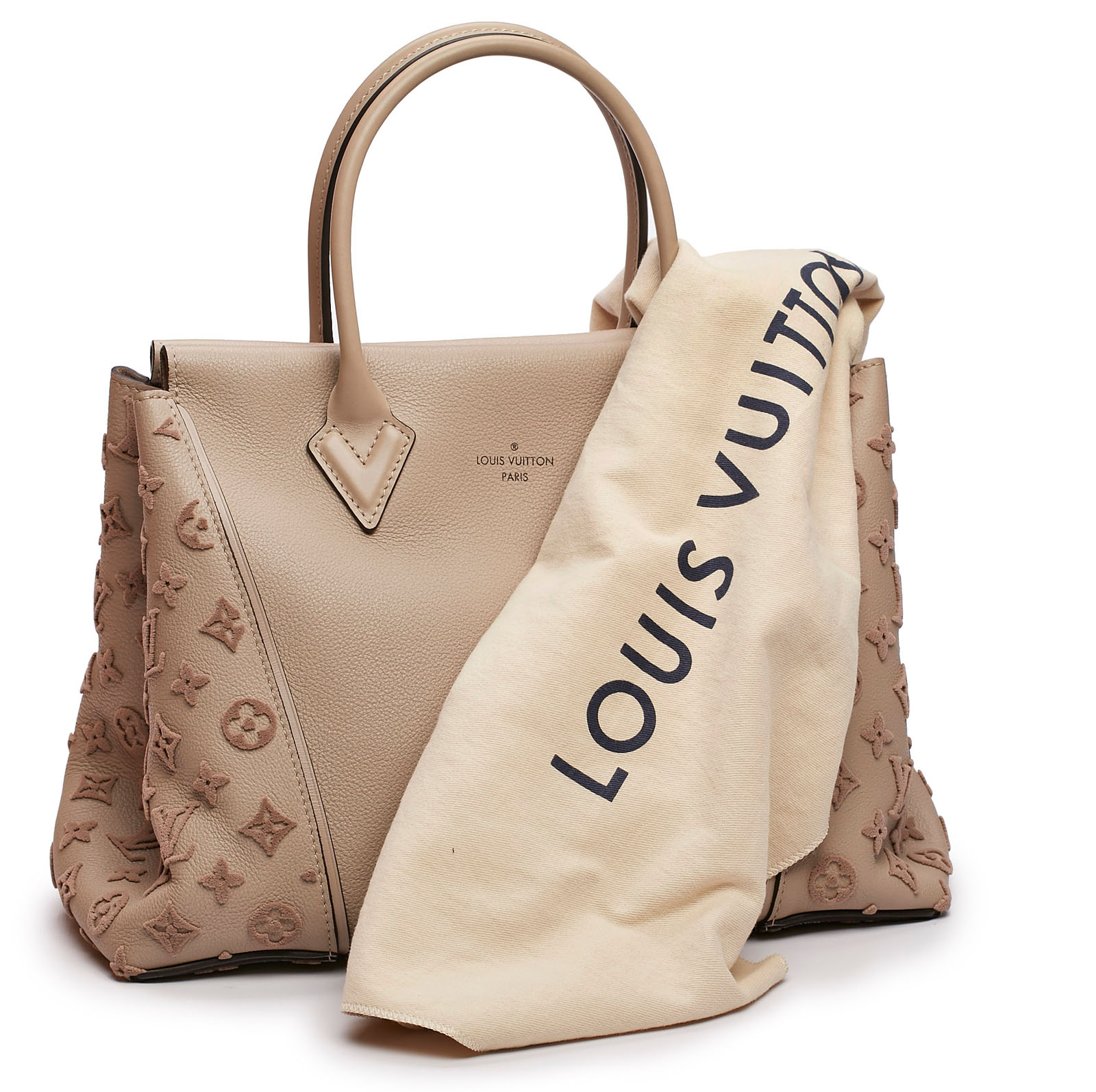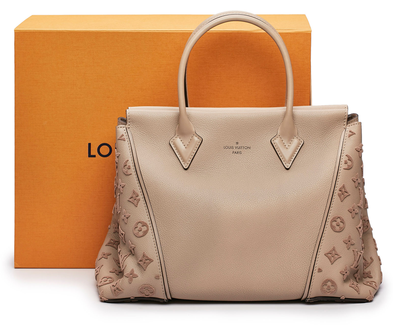 Taupe-farbenes Leder m. Partien in „Veau Cachemire“ (getuftetes Monogramm), goldfarbene Metall-Elemente. 2 Henkel, Magnet- u. Haken-Verschluß. Innen 2 Reißverschluß-Fächer u. 1 offenes Fach. Außen u. innen bez. „Louis Vuitton, Paris“, kleinere Metall-Teile m. „Louis Vuitton“-Schriftzug. Mit orig. Staubbeutel u. Box. B 38 cm
