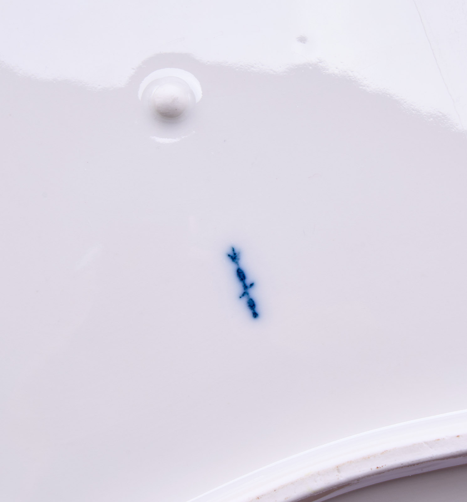 „Rocaille“-Relief, weiß glasiert. Am Boden Zepter-